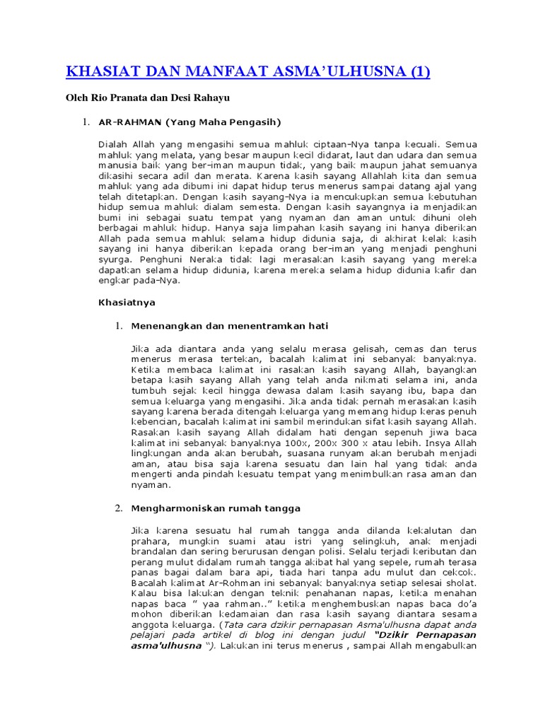 Asmaul Husna, yang merupakan nama-nama Allah yang terbaik, memiliki nilai spiritual yang mendalam dan sedemikian rupa memberi dampak positif bagi kehidupan umat manusia. Dalam artikel ini, kita akan mengeksplorasi khasiat dan manfaat dari 99 Asmaul Husna, serta implikasinya untuk memperkaya kehidupan sehari-hari. Memahami dan mengamalkan nama-nama ini bukan hanya sekadar tradisi, tetapi juga dapat mendorong kita menuju kehidupan yang lebih bermakna.